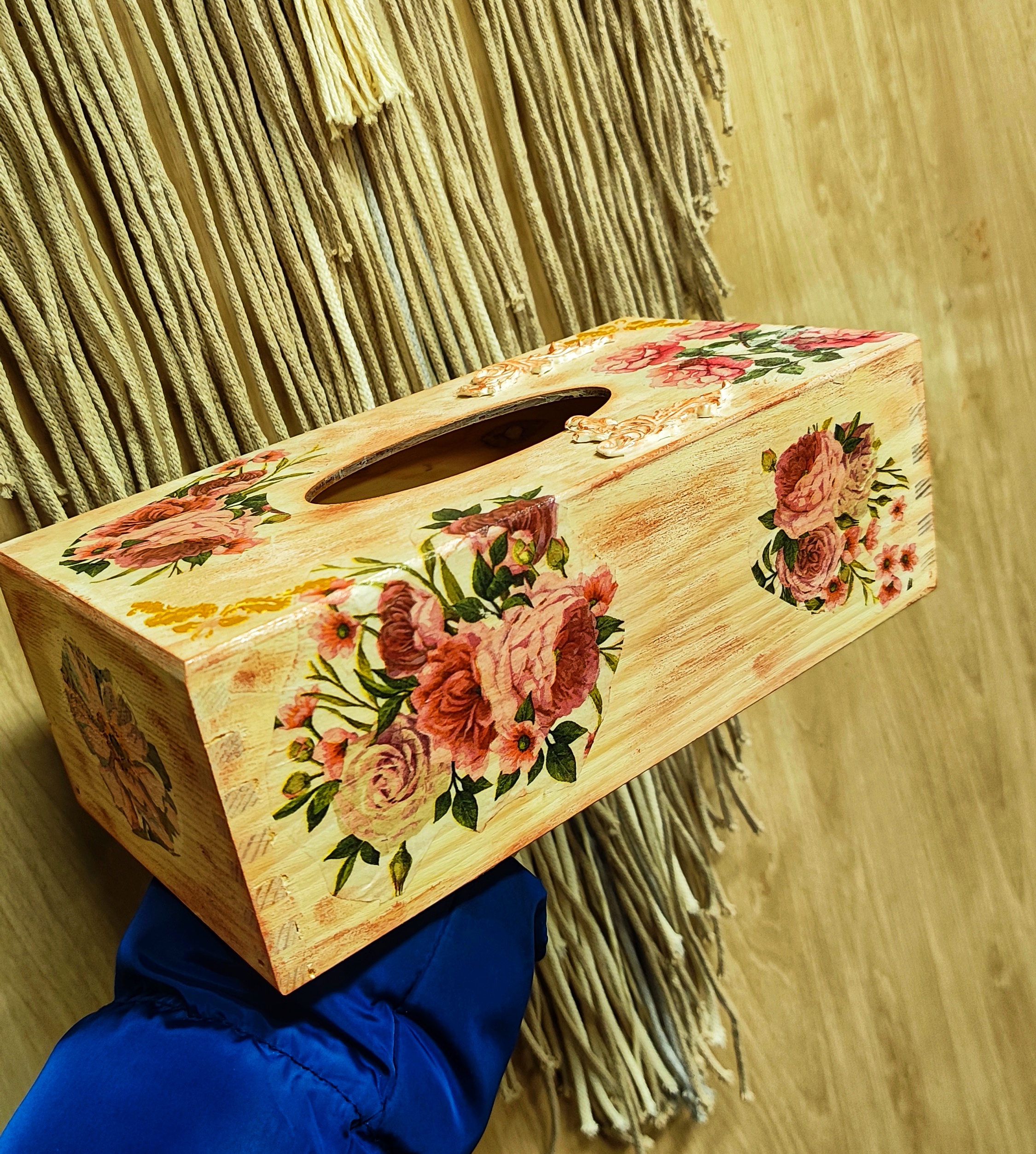 Zapewniamy wszystkie niezbędne materiały – skrzynki, deski, chusteczniki, herbaciarki (w zależności od tematyki), papiery ryżowe, duży wybór serwetek oraz materiały niezbędne do impregnacji.